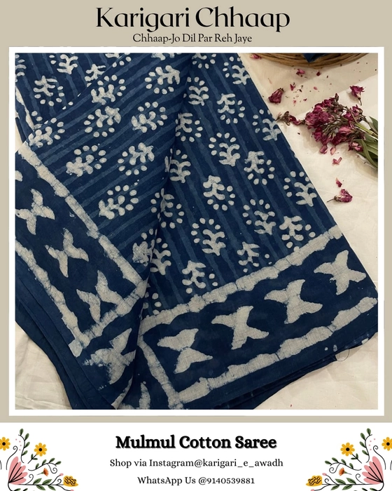 Karigari Chhaap: Mulmul Cotton Saree with Handblock Print